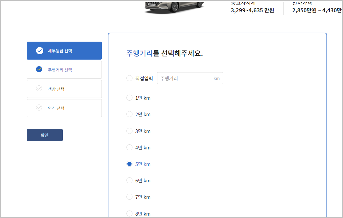 여기서 추가로 옵션 등을 선택해서 자동차를 더 세세하게 확인도 가능합니다. 많은 자동차를 확인하기 어렵기 때문에 내가 사고자 하는 차량의 옵션이나 연식 키로수등을 설정해서 차량들을 살펴보게 된다면 더 빠르게 시세를 확인 가능합니다.
